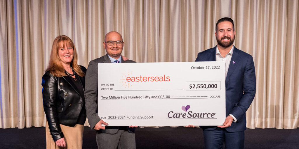 Chicago (IL), October 27, 2022 – Easterseals announced today that it has received a donation of $2.55 million from CareSource, a nationally recognized leader in managed care with a legacy of providing quality health care coverage for Medicaid consumers. The partnership will allow the two organizations to explore groundbreaking innovations for children and adults with disabilities across the country and will help support critical home- and community-based services delivered by Easterseals’ national network of 70 Affiliates.